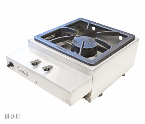 Tomasi Gas Steak Griddles are essential accessories in modern houses and they are their structure is made of stainless steel or painted carbon steel, and it has a removable iron griddle. Kettles, frying pans, pans and other kitchenware can be used on them due to a connected cast iron burner.