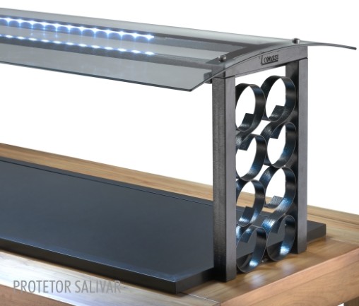 A linha de buffets Vettro Rústico da Tomasi funciona através de uma pista de vidro temperado preto que aquece ou refrigera a comida. Pode-se colocar qualquer tipo de panela ou travessa (alumínio, ferro, porcelana, vidro e outros), o sabor da comida é realçado e você pode dispor os pratos abusando da criatividade.